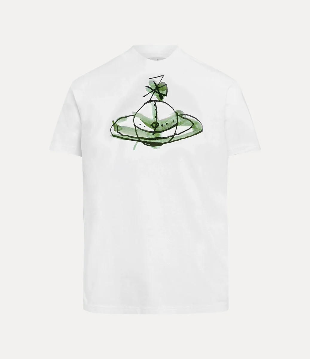 Unser klassisches T-Shirt hat eine weiche Baumwollsilhouette mit kurzen Ärmeln und Rundhalsausschnitt, der mit gerippten Bündchen abgeschlossen ist. Das Modell ist mit dem „Drawn Orb”-Motiv der Saison verziert, das handgemalte Pinselstriche imitiert – eine Anspielung auf die charakteristische DIY-Ästhetik des Hauses.