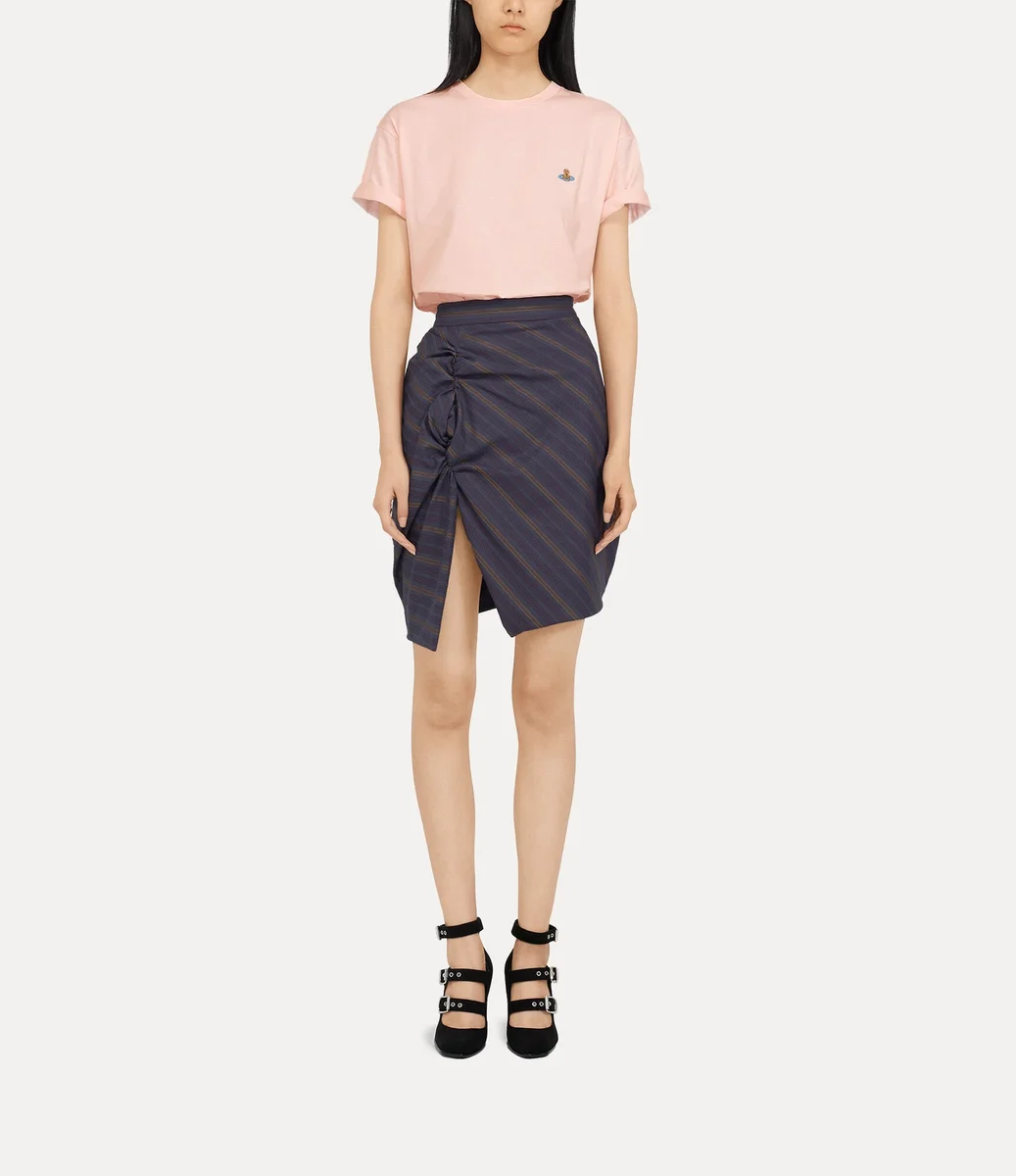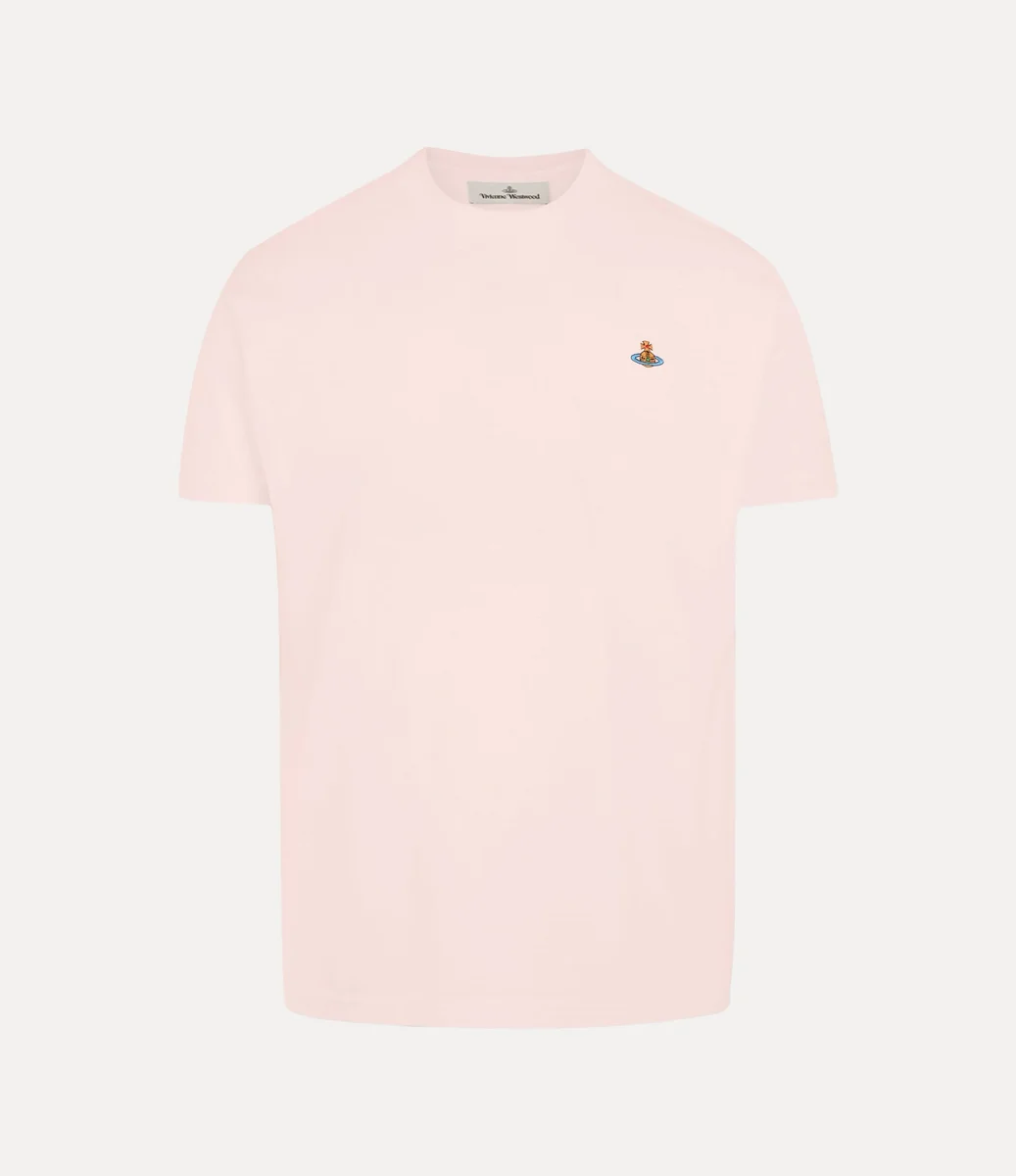 Unser klassisches T-Shirt hat eine weiche Baumwollsilhouette mit kurzen Ärmeln und Rundhalsausschnitt. Auf der linken Brustseite befindet sich eine mehrfarbige Orb-Stickerei – ein Symbol für Viviennes Vision, Tradition in die Zukunft zu tragen.