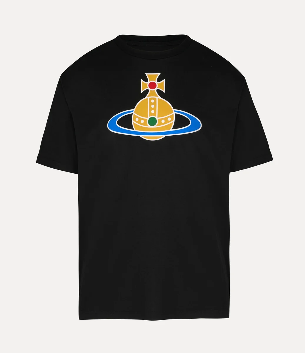 Unser Oversized Orb Classic T-Shirt ist aus leichter Baumwolle gefertigt und verfügt über einen Rundhalsausschnitt, kurze Ärmel und einen geraden Saum. Das Modell ist mit einem mehrfarbigen Orb-Motiv auf der Brust bedruckt, das Viviennes Vision symbolisiert, Tradition in die Zukunft zu tragen.
