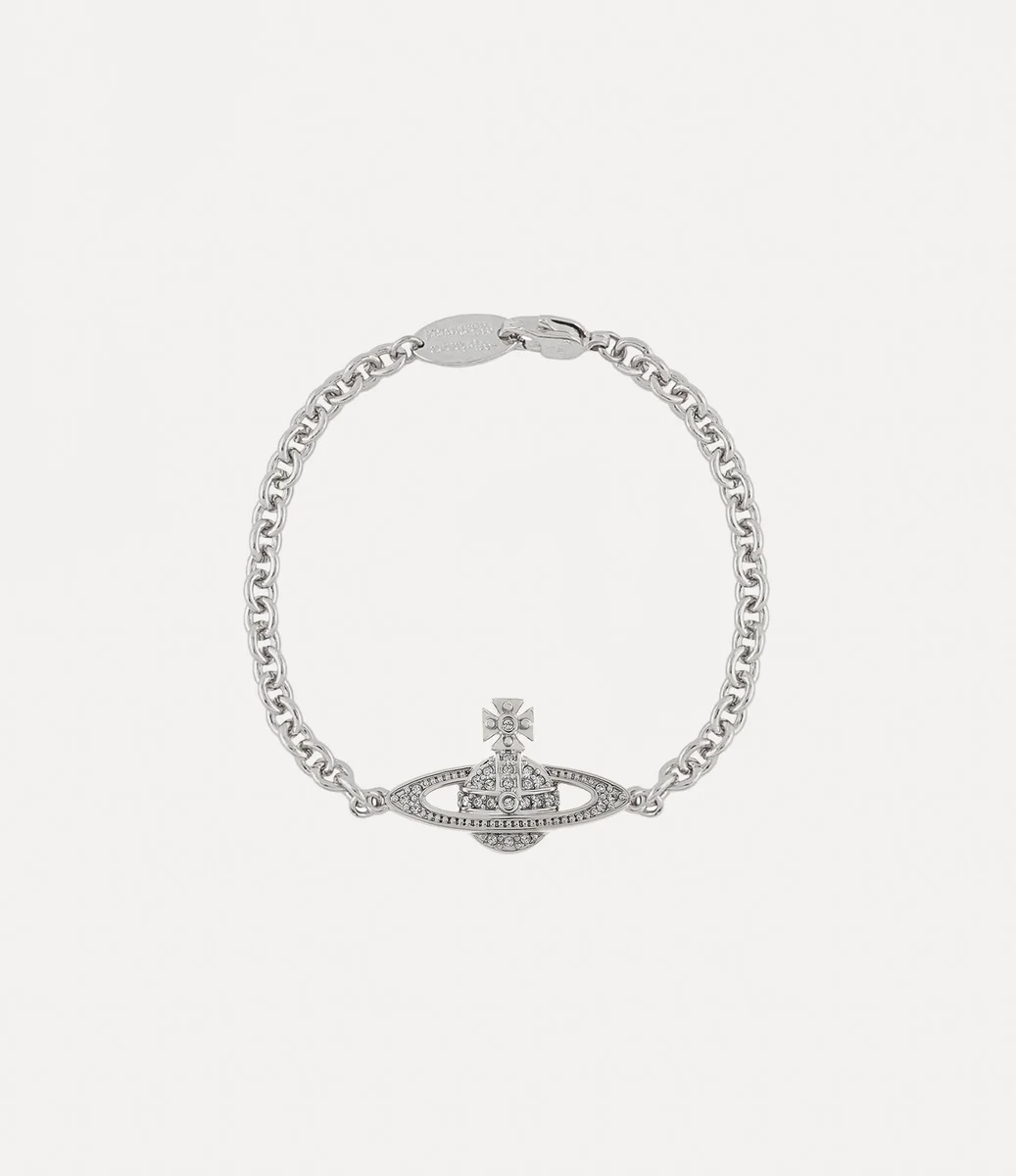 Die Silhouette des Armbands „Man Mini Bas Relief Chain“ greift unser Kugelmotiv wieder auf – ein Synonym für Viviennes Vision, Tradition in die Zukunft zu tragen. Das mit weißen Kristalldetails verzierte Schmuckstück verfügt über eine Trace-Kette mit Karabinerverschluss und ist versilbert.