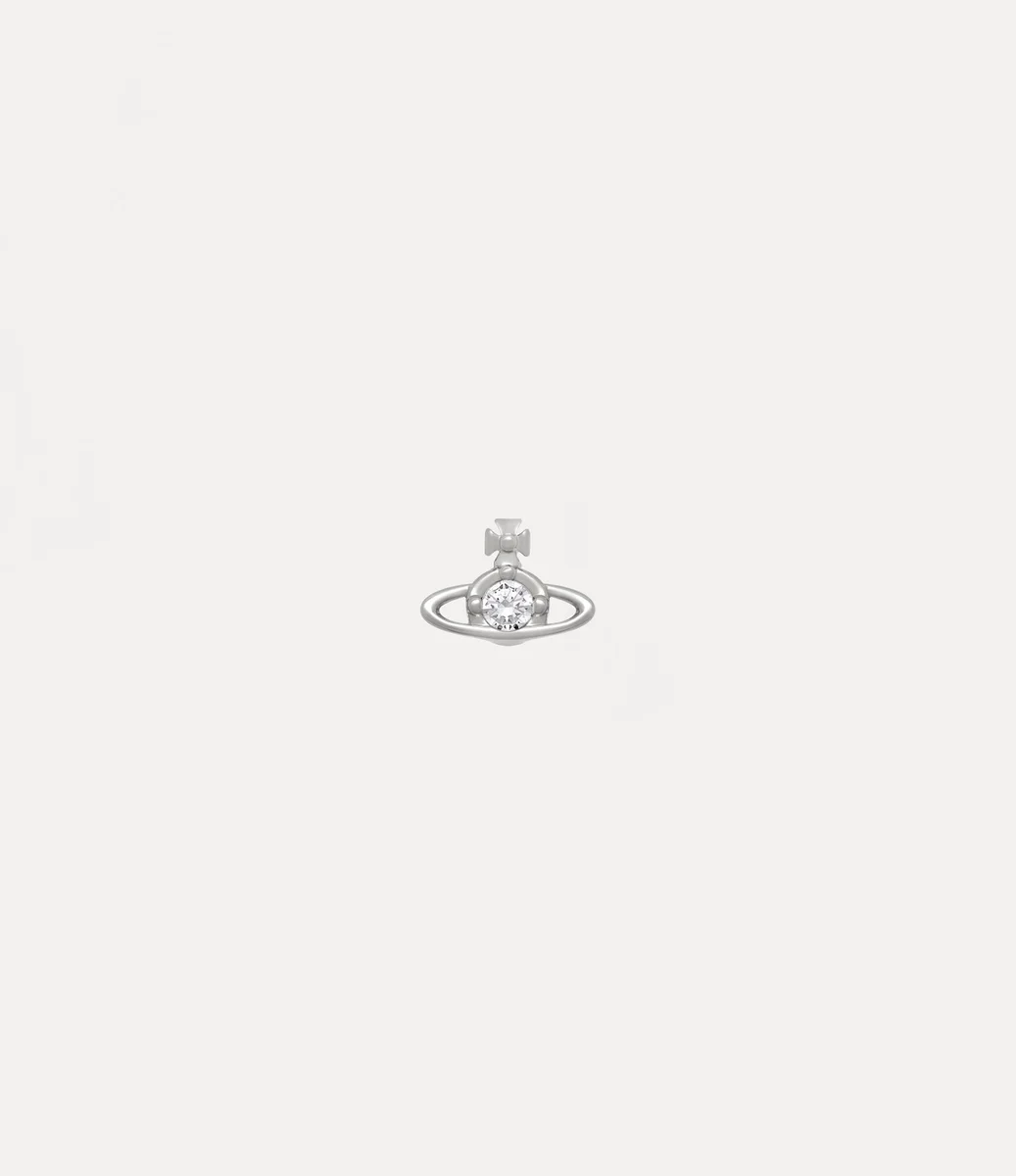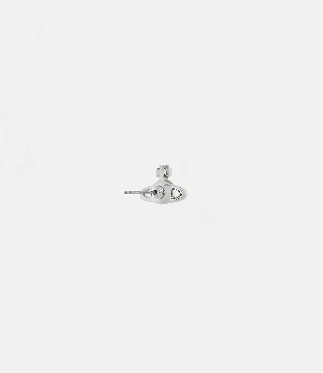 Der Nano Solitaire Single Stud ist ein charakteristischer Stil des Hauses, komplett mit einer zweidimensionalen silberfarbenen Kugel-Silhouette, inspiriert vom kugelförmigen Motiv des Hauses. Mit einem funkelnden weißen Kristall in der Mitte des Designs verziert, erinnert das Stück an Viviennes Vision, Tradition in die Zukunft zu tragen.