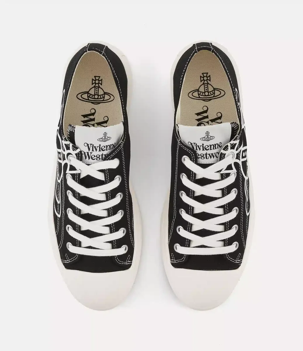 Unsere Low-Top-Canvas-Plimsolls sind mit dem Archivmotiv „Line Orb” des Hauses verziert – ein Synonym für Viviennes Vision, Tradition in die Zukunft zu tragen. Das Modell hat ein Baumwoll-Canvas-Finish und ist mit einem gewebten Label auf der Zunge verziert.